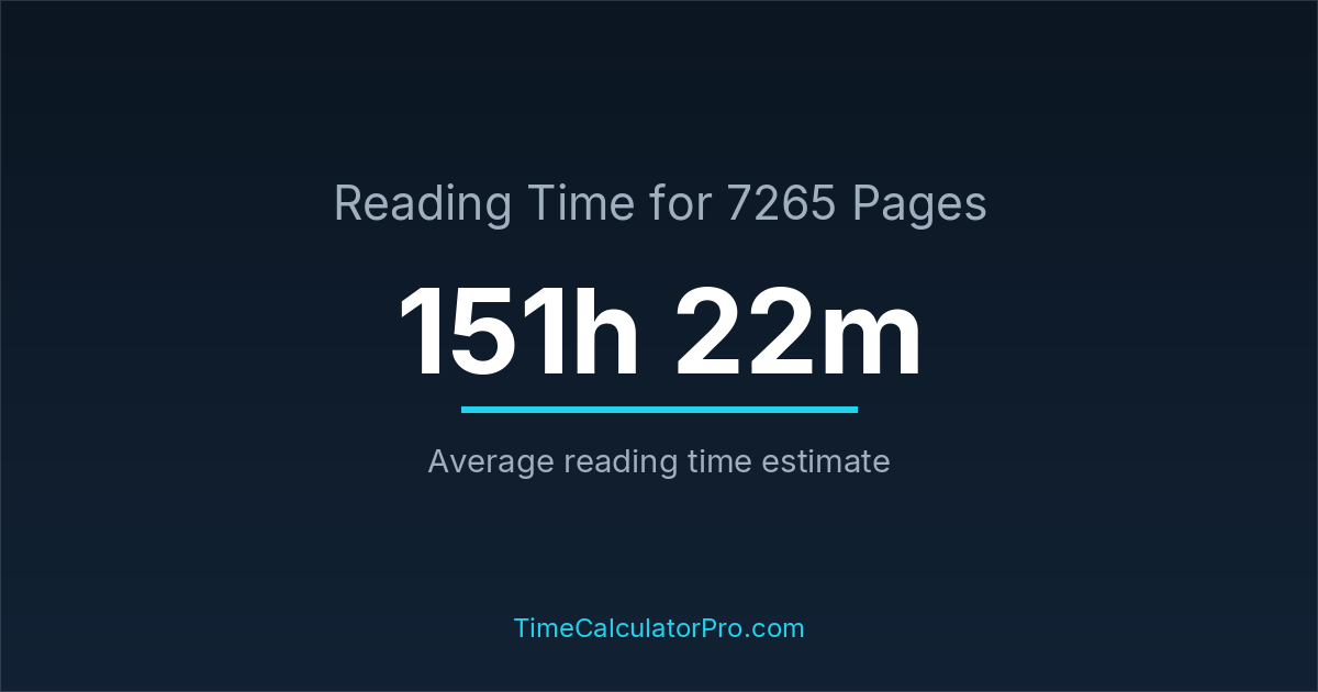 Reading 7265 pages usually takes approximately 151 hours and 22 minutes for the average reader, though this can vary depending on concentration and reading habits.