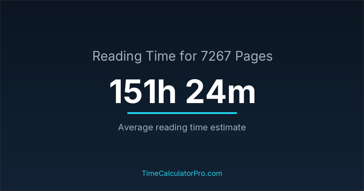 Many readers ask how long it takes to read 7267 pages, and the answer is typically around 151 hours and 24 minutes depending on reading speed.