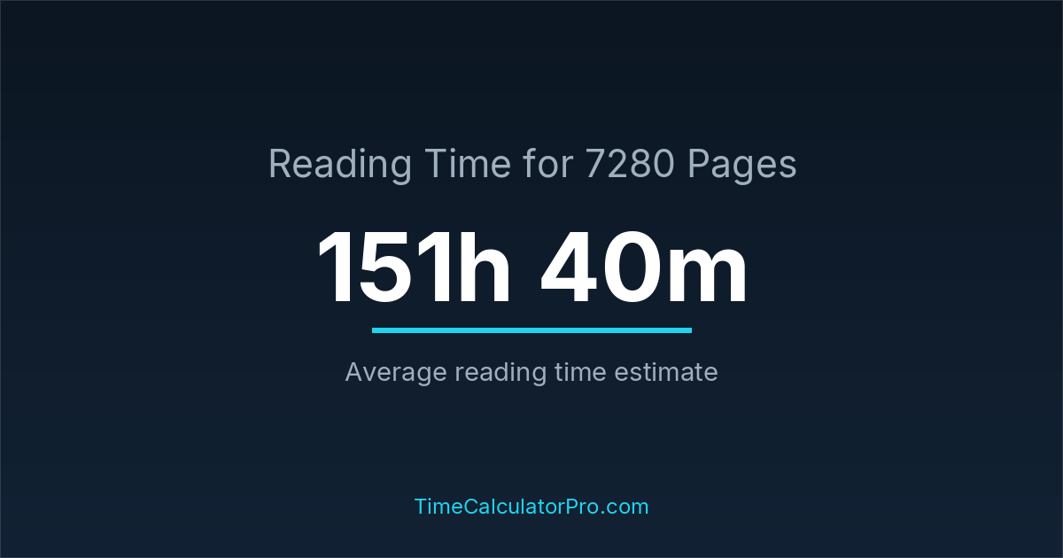 Reading 7280 pages takes about 151 hours and 40 minutes.