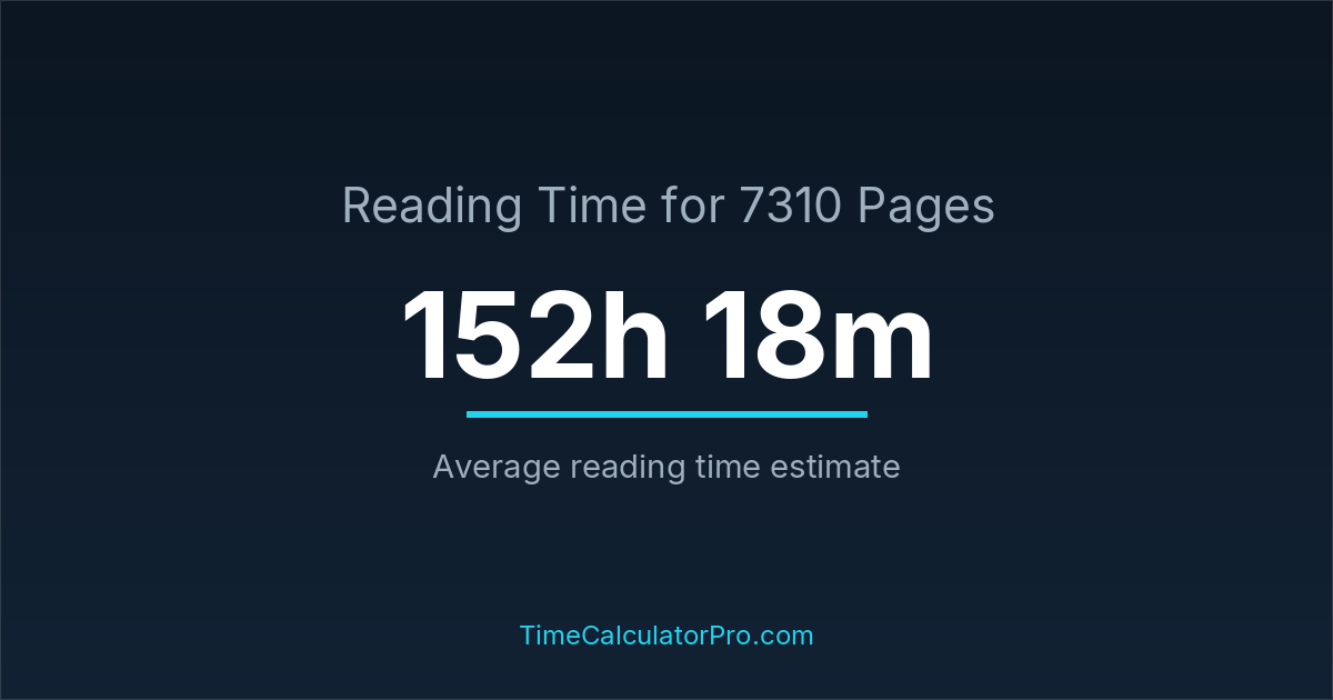 On average, reading 7310 pages may require about 152 hours and 18 minutes for most readers, assuming a standard reading pace and moderate difficulty.