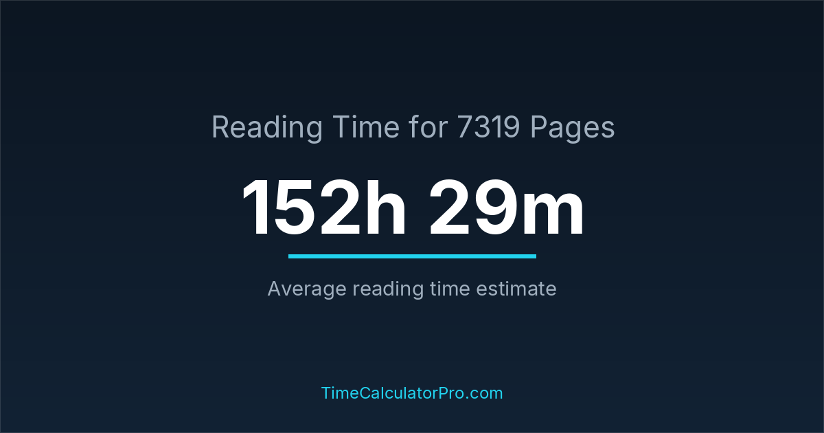 If you read at an average speed of 200 words per minute, reading 7319 pages will take approximately 152 hours and 29 minutes. This estimate assumes around 250 words per page, which is typical for most books.