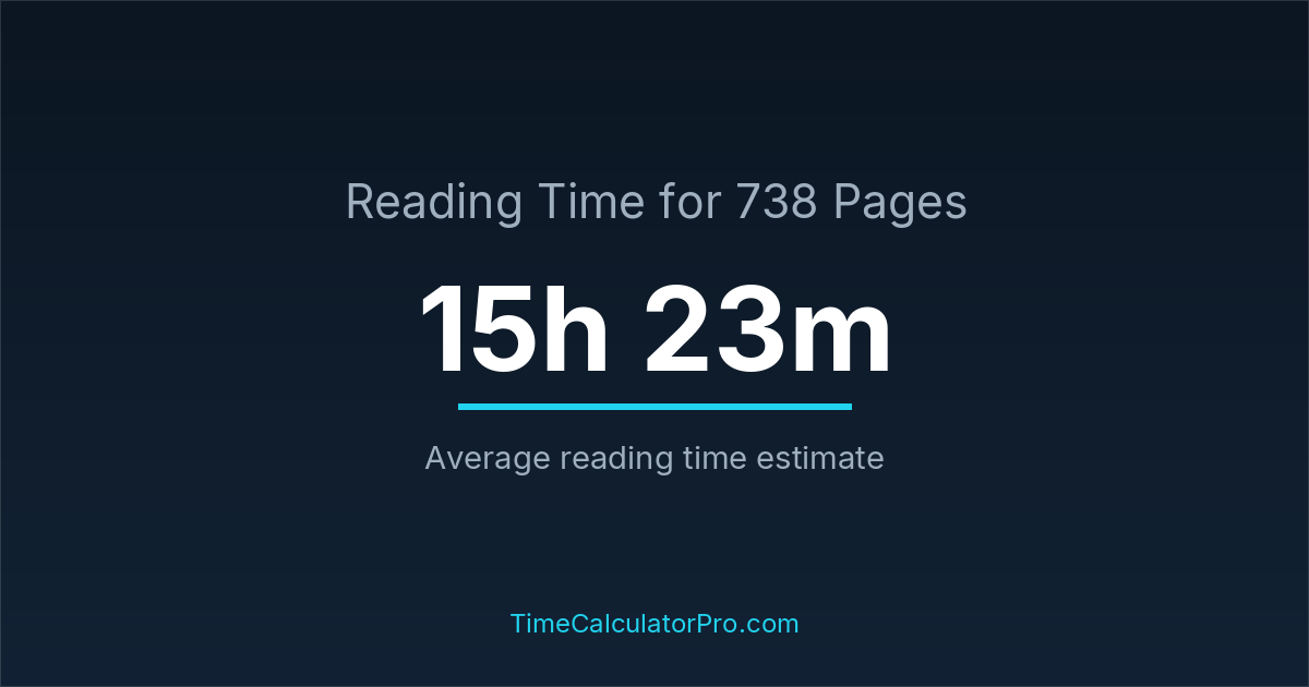 Reading 738 pages takes about 15 hours and 23 minutes.