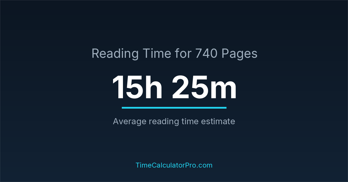 If you are wondering how long it takes to read 740 pages, the estimated reading time is roughly 15 hours and 25 minutes based on common reading speed averages.
