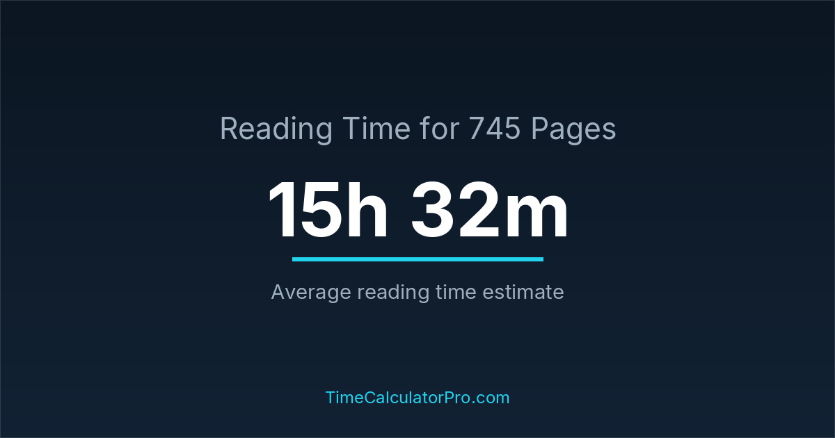 Reading 745 pages usually takes approximately 15 hours and 32 minutes for the average reader, though this can vary depending on concentration and reading habits.
