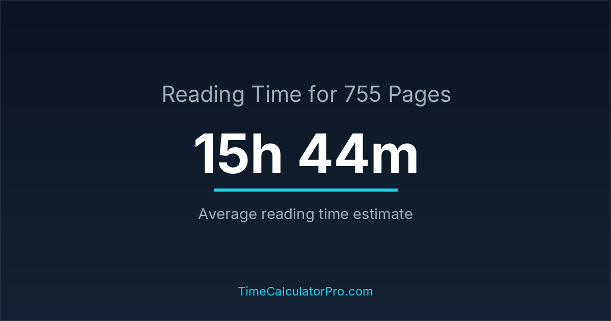 Reading 755 pages takes about 15 hours and 44 minutes.