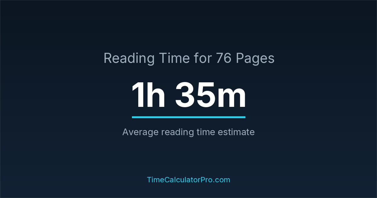 Using a reading time calculator, you can estimate that 76 pages will take around 1 hours and 35 minutes to complete.
