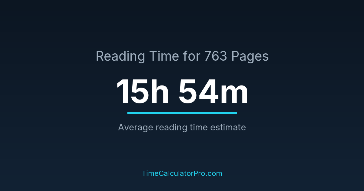 Reading 763 pages takes about 15 hours and 54 minutes.