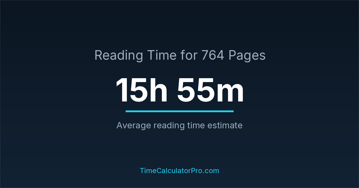 On average, reading 764 pages may require about 15 hours and 55 minutes for most readers, assuming a standard reading pace and moderate difficulty.