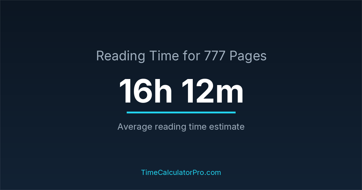 Reading 777 pages takes about 16 hours and 12 minutes.