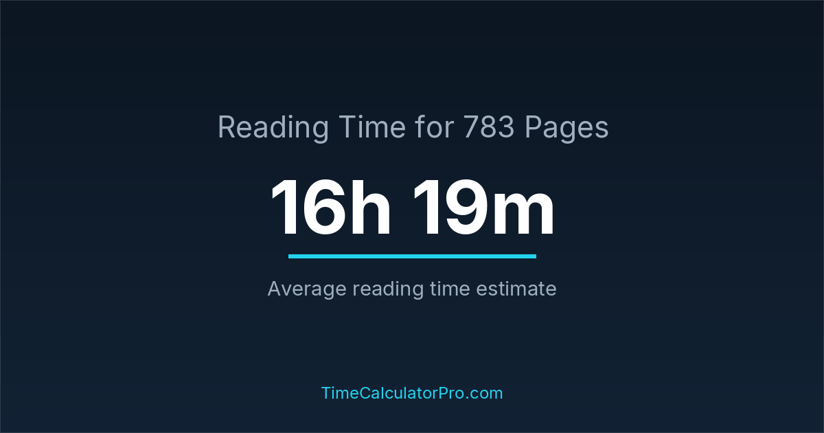 Reading 783 pages takes about 16 hours and 19 minutes.