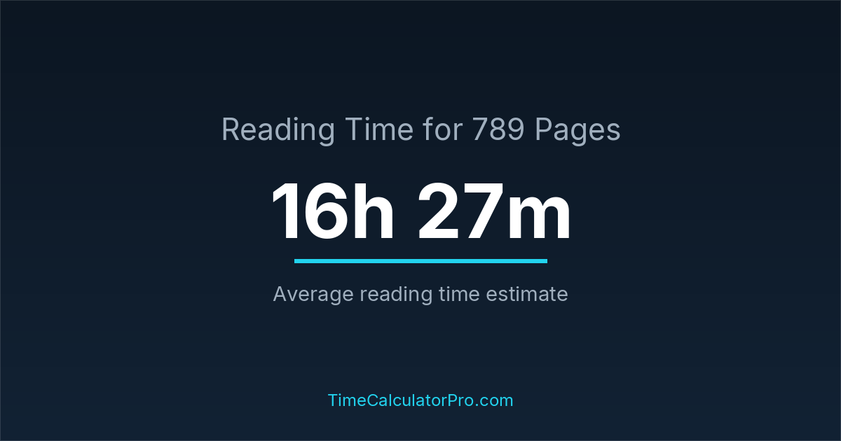 Reading 789 pages takes about 16 hours and 27 minutes.