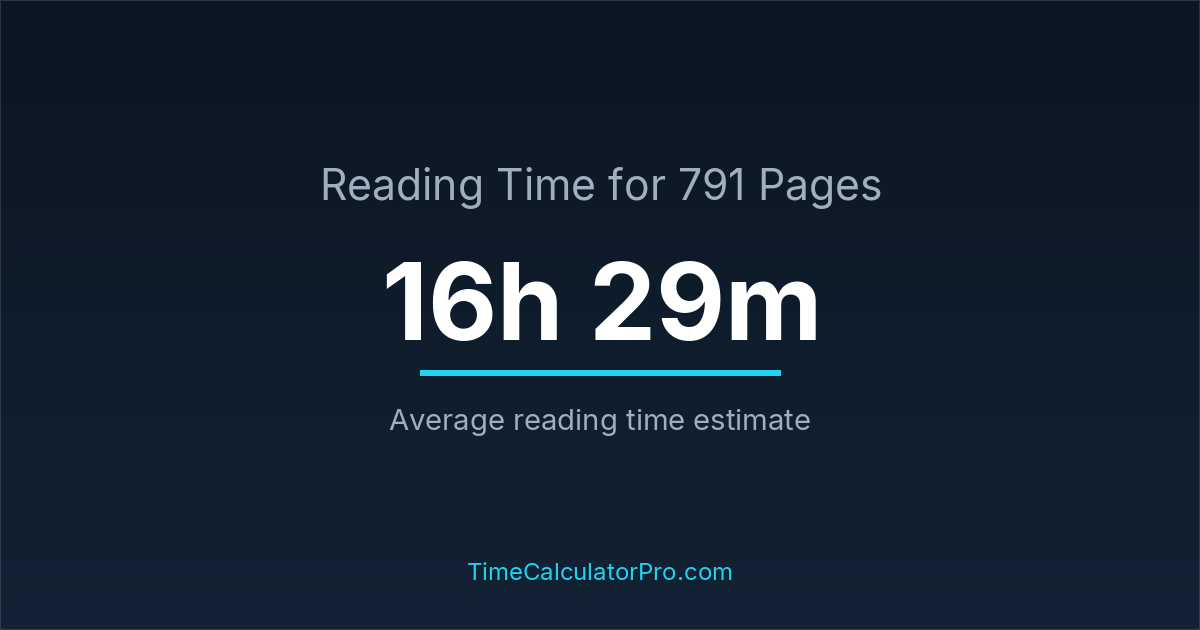 Reading 791 pages takes about 16 hours and 29 minutes.