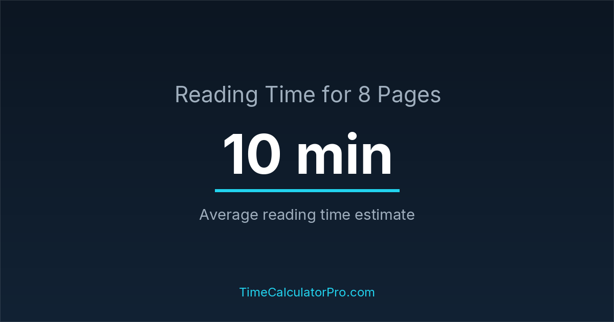 Using a reading time calculator, you can estimate that 8 pages will take around 0 hours and 10 minutes to complete.