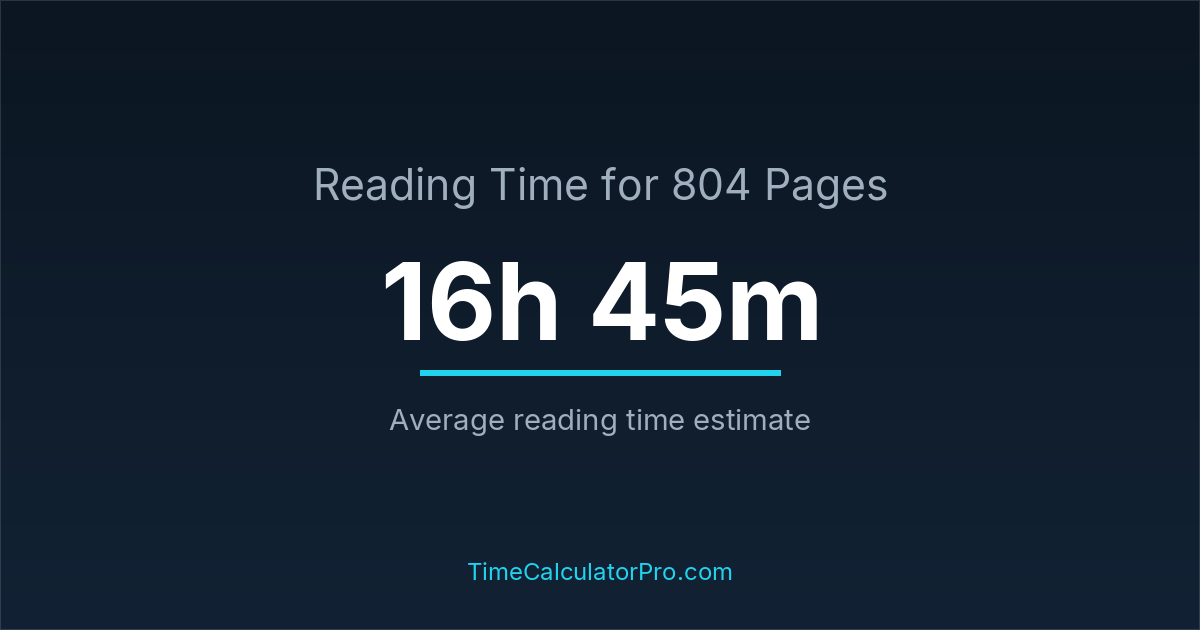 If you read at an average speed of 200 words per minute, reading 804 pages will take approximately 16 hours and 45 minutes. This estimate assumes around 250 words per page, which is typical for most books.