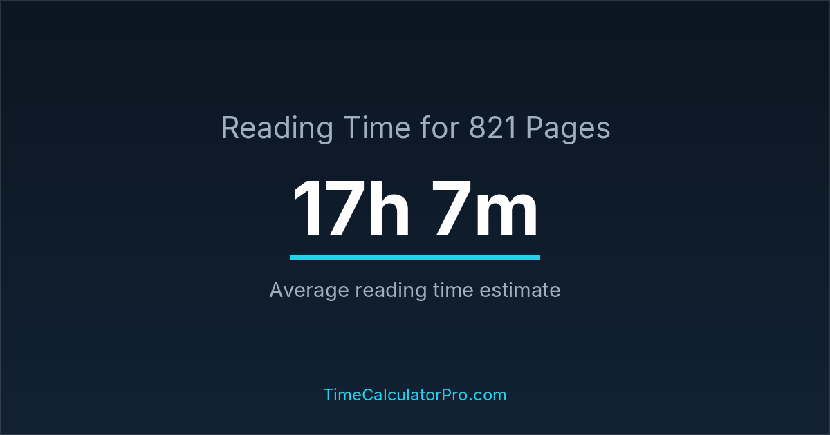 Estimating how long it takes to read 821 pages can help you plan your reading schedule, with an average time of 17 hours and 7 minutes.