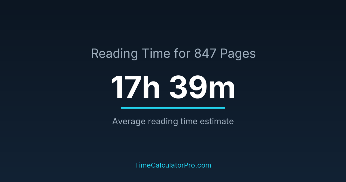 Reading 847 pages takes about 17 hours and 39 minutes.