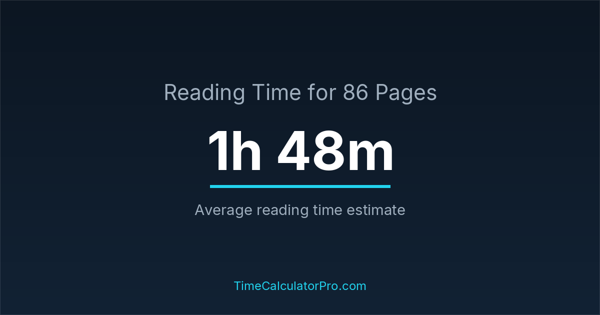 At an average reading speed of about 200 words per minute, many readers can comfortably finish 86 pages within the estimated time frame.