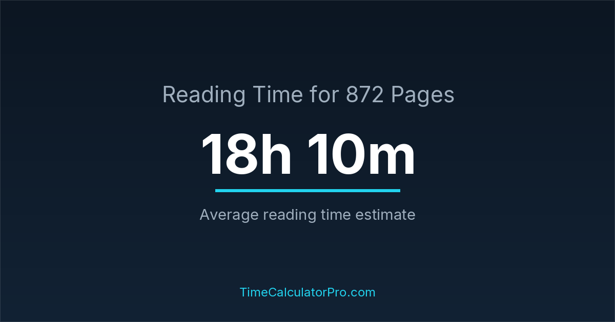 Reading 872 pages takes about 18 hours and 10 minutes.