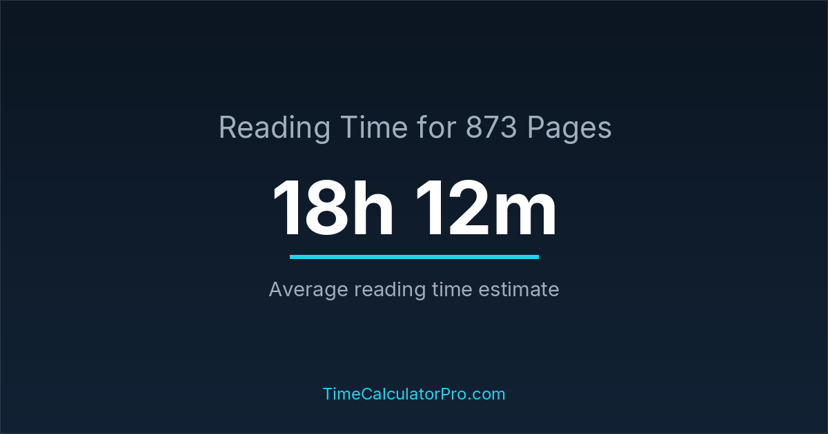 Reading 873 pages takes about 18 hours and 12 minutes.