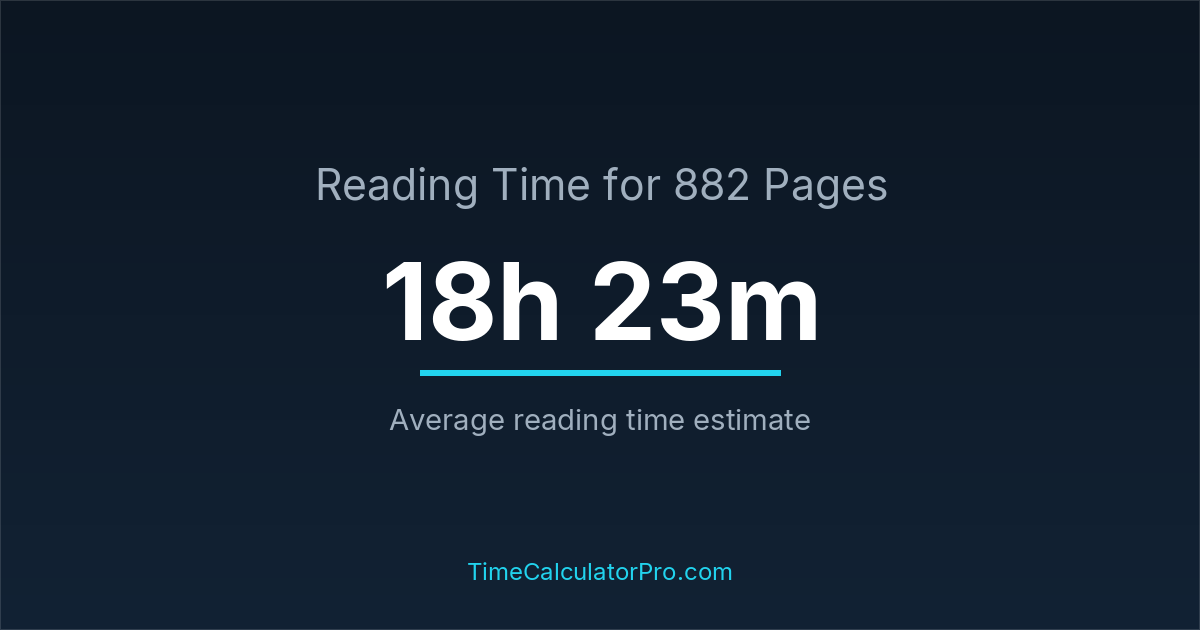 On average, reading 882 pages may require about 18 hours and 23 minutes for most readers, assuming a standard reading pace and moderate difficulty.