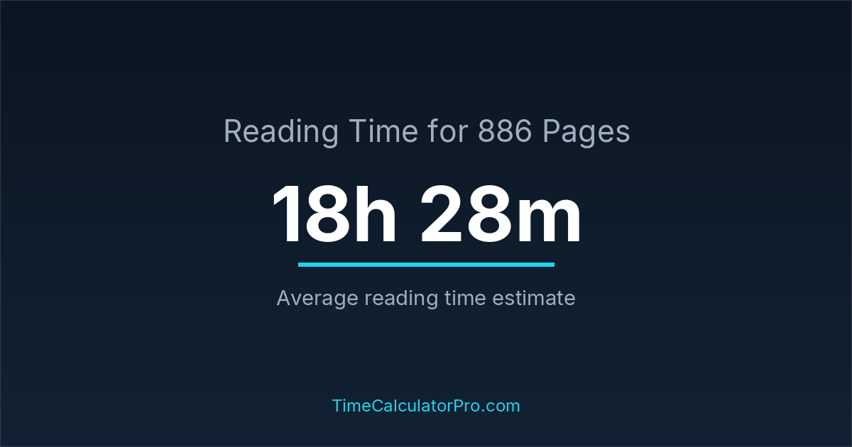 Reading 886 pages takes about 18 hours and 28 minutes.