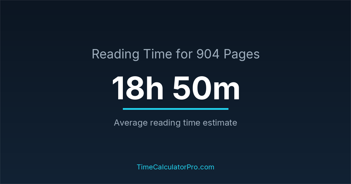 The average reading time for 904 pages is about 18 hours and 50 minutes, but this can change depending on the difficulty of the text.