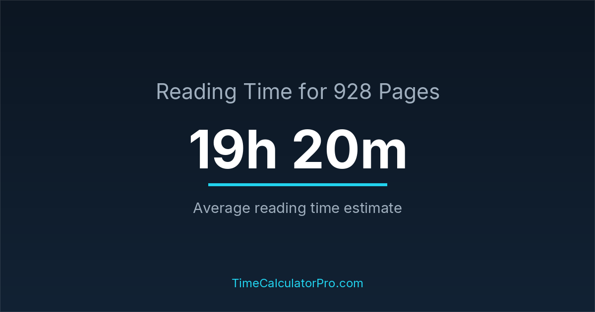 Reading 928 pages takes about 19 hours and 20 minutes.