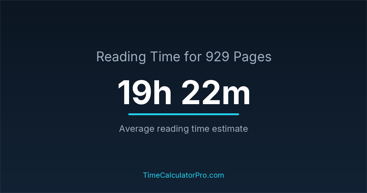 Reading 929 pages takes about 19 hours and 22 minutes.