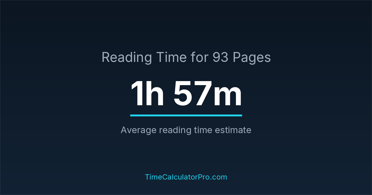 If you read at an average speed of 200 words per minute, reading 93 pages will take approximately 1 hours and 57 minutes. This estimate assumes around 250 words per page, which is typical for most books.
