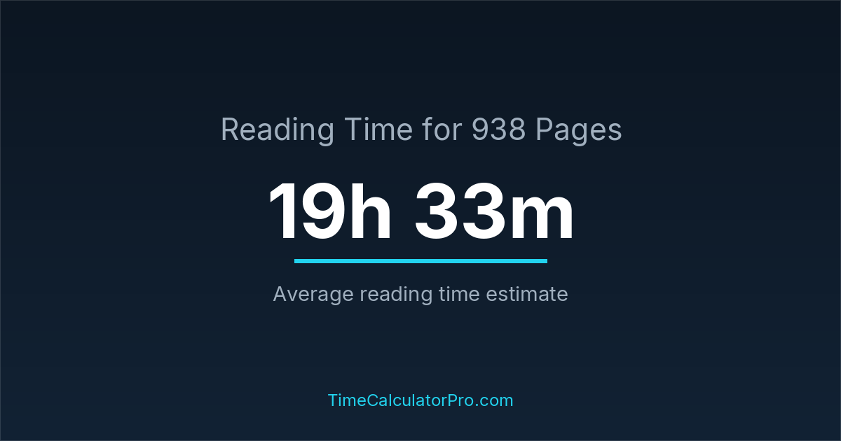 Reading 938 pages takes about 19 hours and 33 minutes.