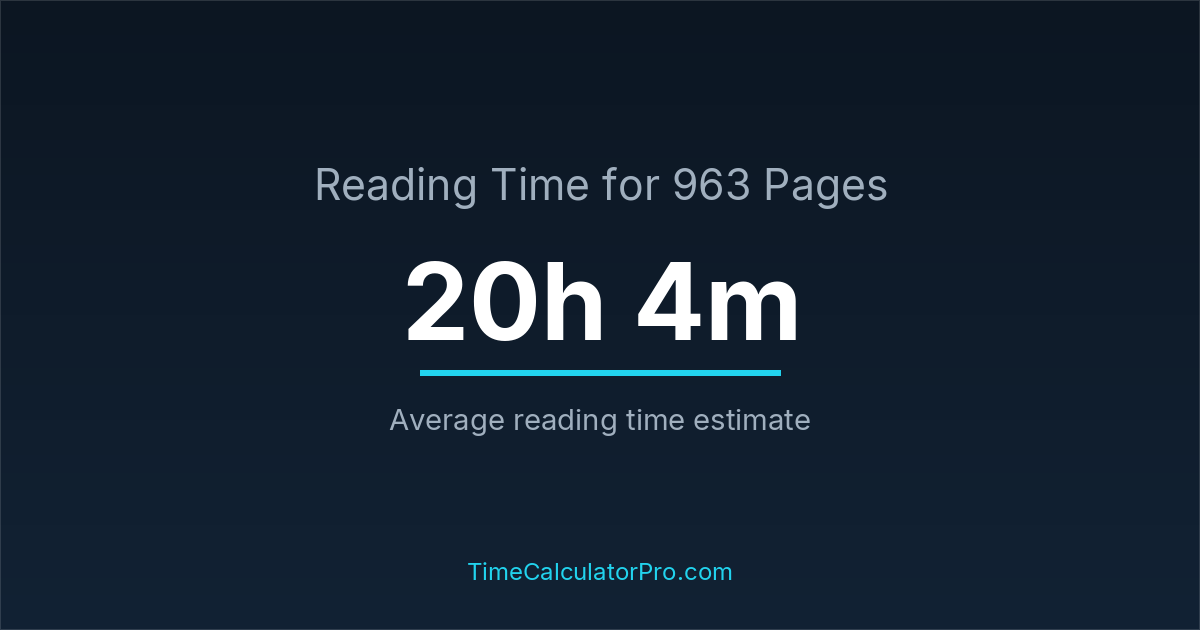 Reading 963 pages takes about 20 hours and 4 minutes.