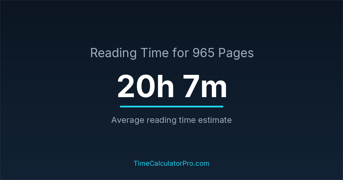 Reading 965 pages takes about 20 hours and 7 minutes.