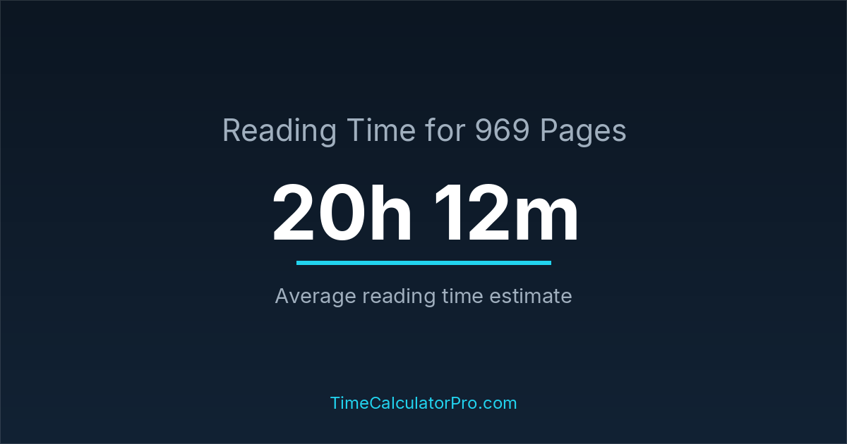 Reading 969 pages takes about 20 hours and 12 minutes.