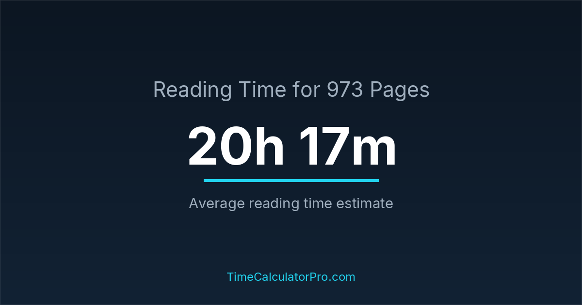 Reading 973 pages takes about 20 hours and 17 minutes.