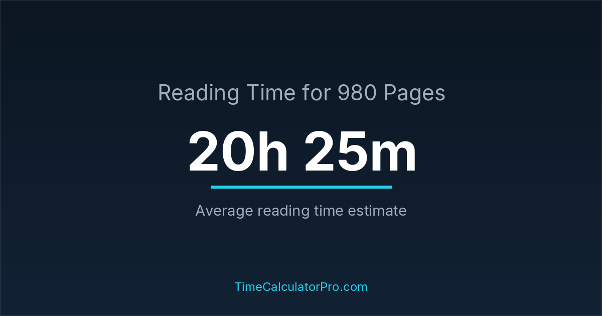 Reading 980 pages takes about 20 hours and 25 minutes.