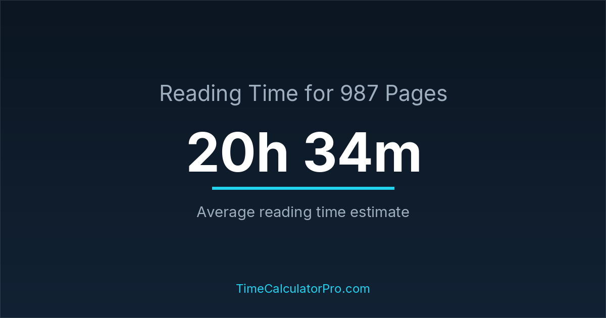 Reading 987 pages takes about 20 hours and 34 minutes.