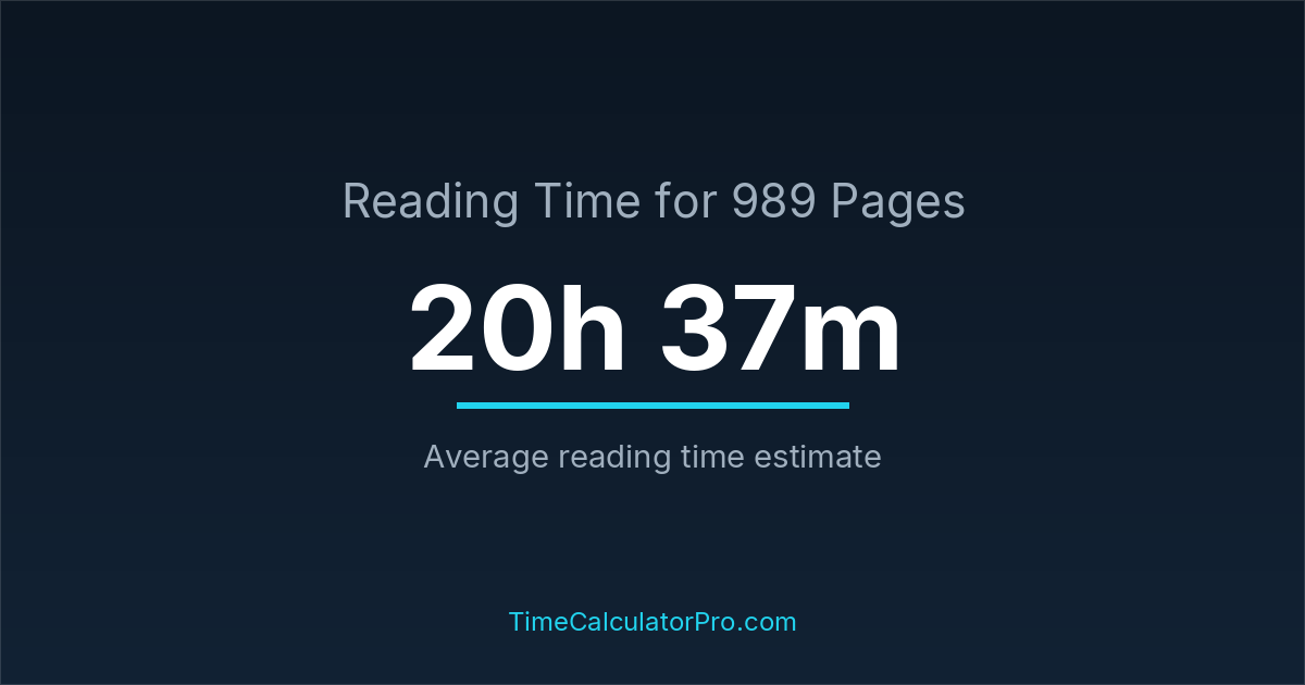 Reading 989 pages takes about 20 hours and 37 minutes.