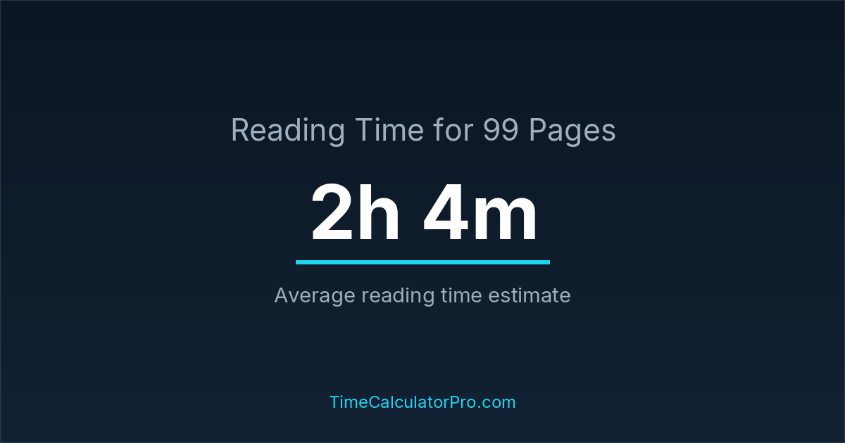 If you read at an average speed of 200 words per minute, reading 99 pages will take approximately 2 hours and 4 minutes. This estimate assumes around 250 words per page, which is typical for most books.