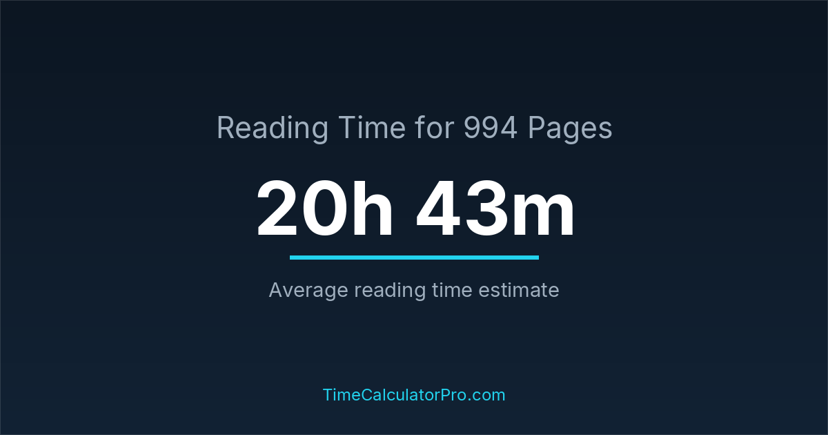 Reading 994 pages takes about 20 hours and 43 minutes.