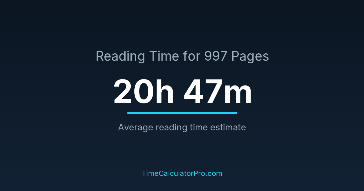 Reading 997 pages takes about 20 hours and 47 minutes.